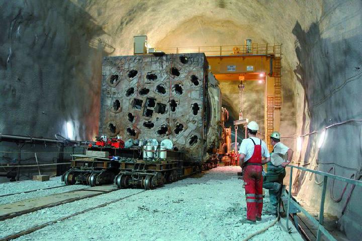 More than 85km of the main tubes have been excavated and secured with Herrenknecht tunnel boring machines. These high-tech steel giants from Schwanau, with a length of more than 400 meters and cutterheads measuring 9.5 meters, tunnelled their way through the tremendously hard rock, while the crowds of skiers enjoying the snow some 2,000 meters above in the Lukmanier Pass remain oblivious to the ear-splitting noise and the machine's brute force. Since beginning their mountain-munching journey in 2003, the cutting wheels of the four Herrenknecht machines have 'swallowed' around 10.5 million cubic meters of rock. This is about four times the volume of the Pyramid of Cheops in Giza. Around 75 % of the tunnel's main route have been or are being excavated by these 'mega-moles', as the tunnel boring machines (TBMs) are sometimes known. However, with the sum total of 114 kilometers of parallel tunnels, the project is far from being complete.