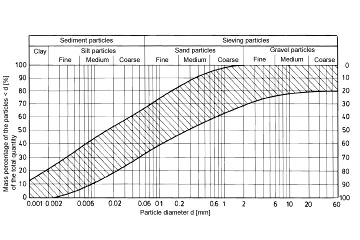 In any case of specific application, the existing site-specific grain size distribution of the soil should always be determined, using the already known results from other sites in the vicinity could have distortive effects. This is illustrated by the following grain distribution curves of various soil samples collected in the German city of Hamburg. They clearly illustrate the variety of grain sizes and soil uniformity of soil samples collected from a relatively small geographical area.