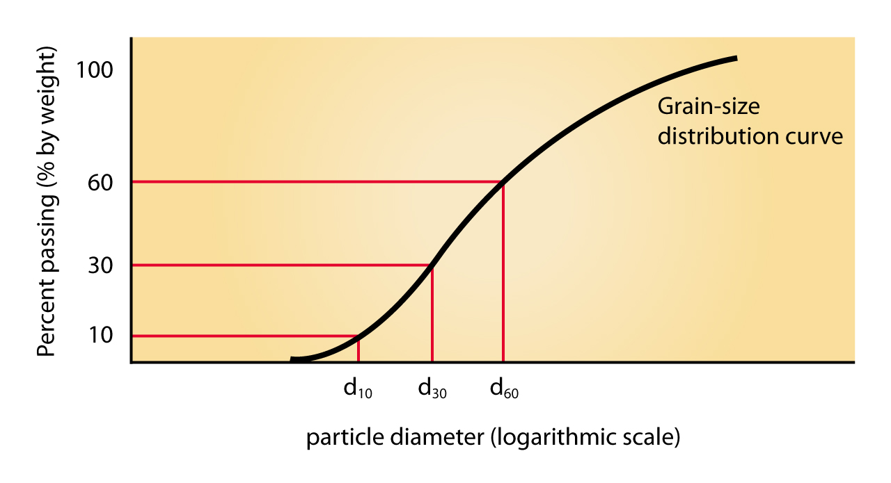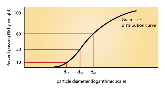 The grading curve results in essential curve parameters that require a prior determination of d10, d30 and d60.