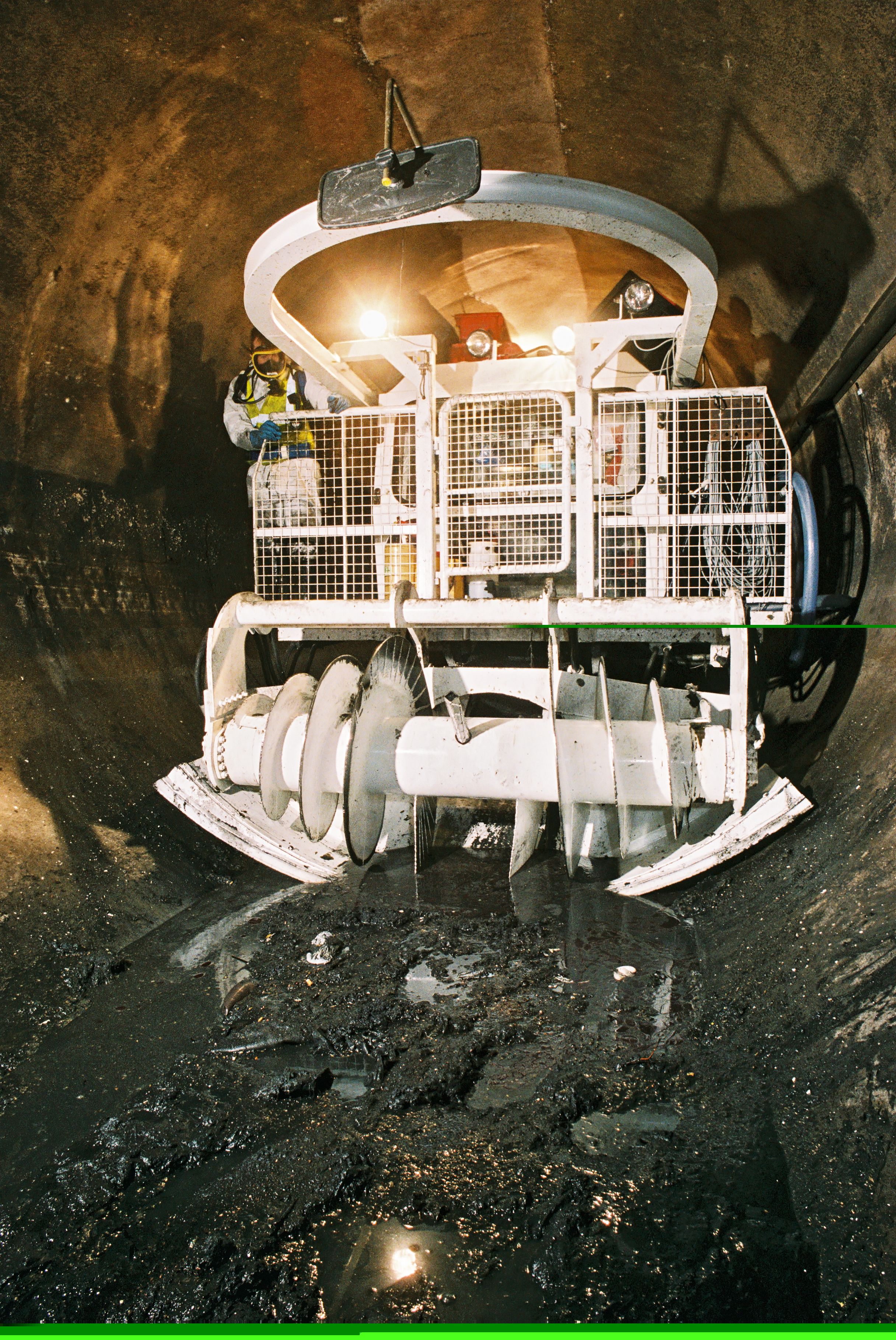 At the front of the machine are located the debris removal component, which comprises debris conveyors and scraper plates that are adjustable to the sewer profile.