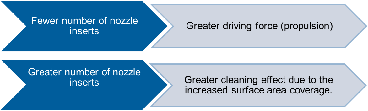 Connection between cleaning and driving performance based on the number of nozzle inserts: