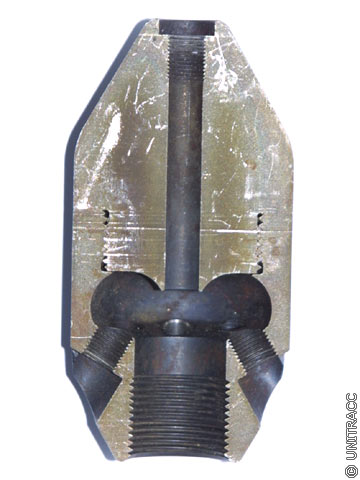 In the cleaning nozzle, the water flow is deflected and distributed over the individual nozzle apertures and inserts.