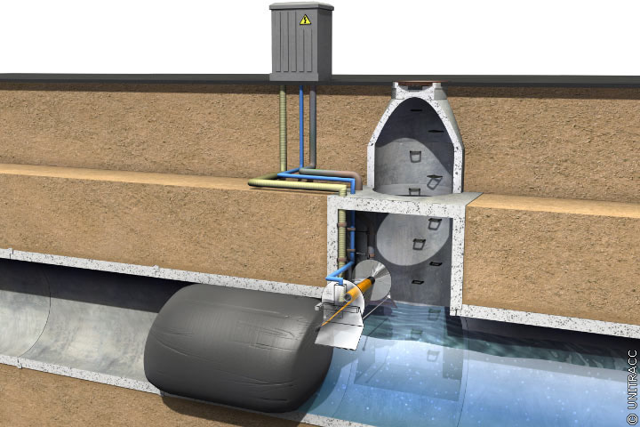 Wastewater volume activated flushing system - Inflatable plug by HST Hydro-Systemtechnik GmbH [FI-HST]