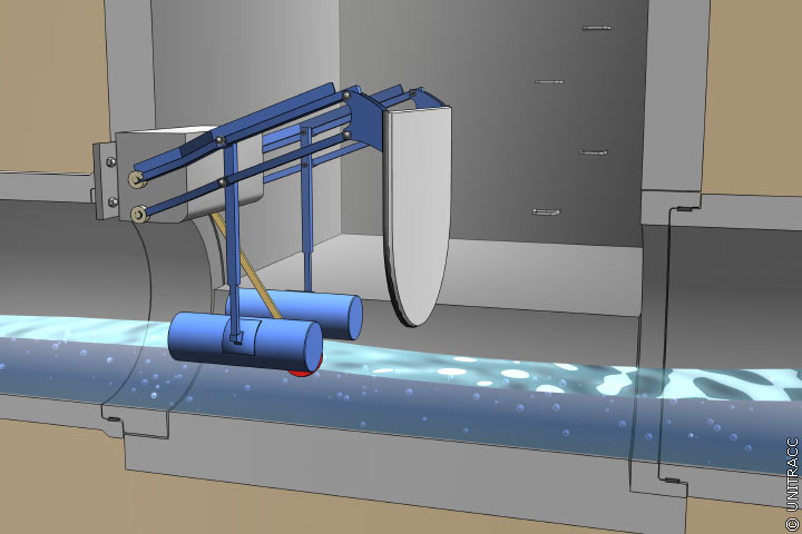 After the retention area is drained, the float gauge sensor activates the closing of the flush gate. It moves into the starting position and closes the seal with the sewer cross section. The flushing cycle starts again.
