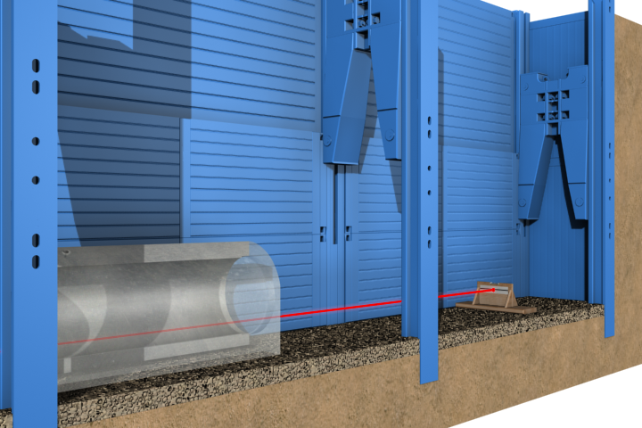 Wichtig ist die Kontrolle der Höhe und Ebenflächigkeit des Auflagers mit Hilfe des Kanallasers in Längsrichtung sowie einer Wasserwaage in Querrichtung. |