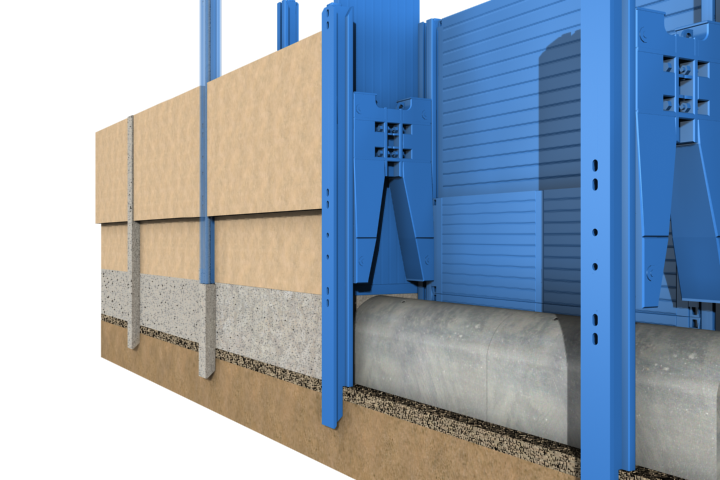 Abschließend werden die Verbaustützen gezogen und der entstehende Hohlraum über die innen liegenden Injektionskanäle mit Flüssigboden verfüllt. |