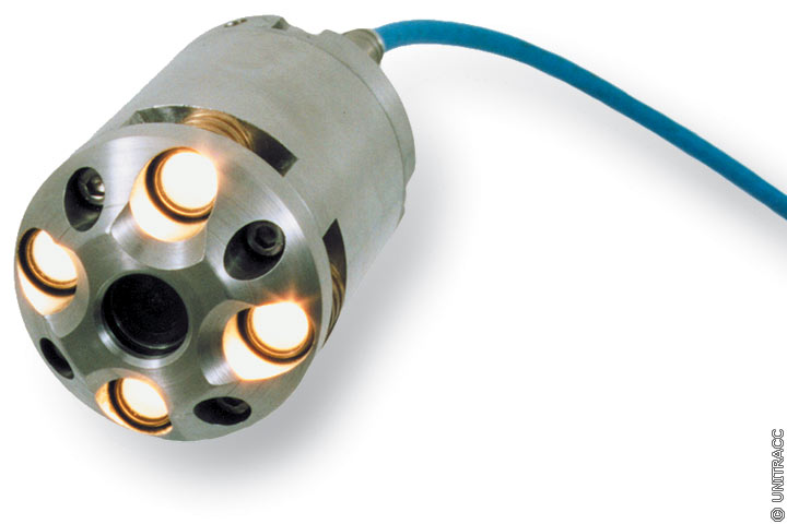 Bei ausreichendem Leitungsdurchmesser (je nach Kamerasystem ab DN 100) und Strecken ohne Abzweige werden am häufigsten Fahrwagenkameras eingesetzt (Image 11.2-3). Es handelt sich dabei um ferngesteuerte Fahrwagen, auf denen eine zumeist dreh- und schwenkbare Kamera montiert ist. Die Stromversorgung kann sowohl extern durch ein mitgeführtes Kabel als auch durch eine eingebaute Batterie erfolgen. Im Rahmen der Videoaufzeichnung lassen sich die vorhandenen Leitungen inklusive der Schadensstellen orten und einmessen.