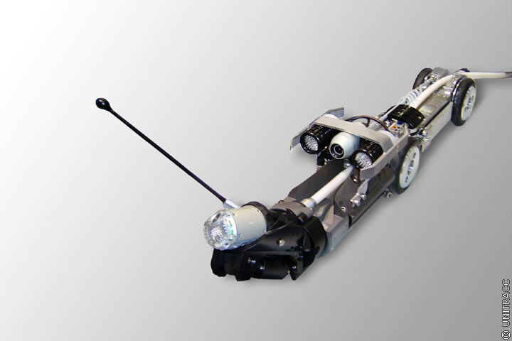 Der "Aaligator" (Image 11.2.1-1) ist ein hydraulisch angetriebenes Kamerasystem. Am Kamerakopf seitlich angebrachte Düseneinsätze ermöglichen auch ein Abbiegen in abzweigende Leitungen.