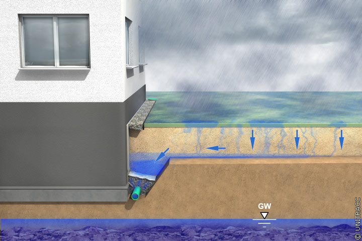 das Dränagewasser aus Regenwasser resultiert, welches sich bei Starkregenereignissen auf bindigen Bodenschichten aufstaut.