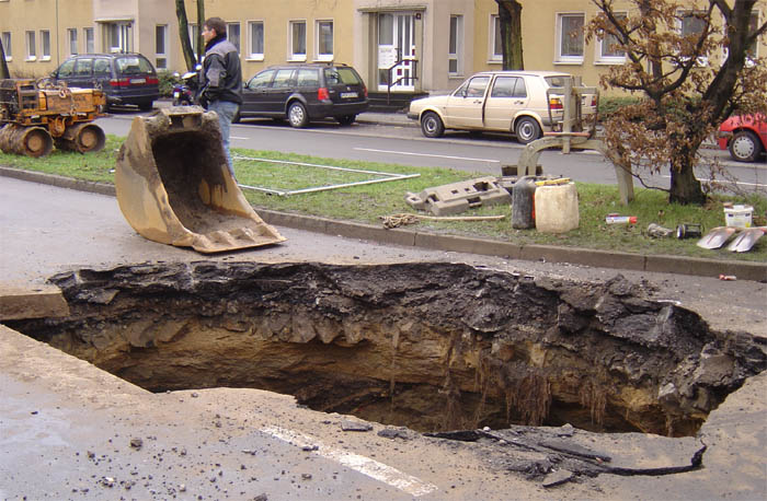 Hohlraumbildung durch undichte Abwasserleitungen