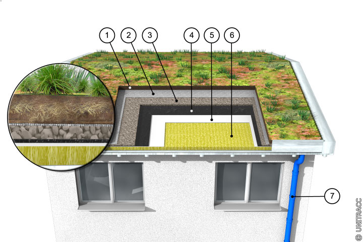 Funktionsbeschreibung: Konstruktiv speziell für Begrünung geeignete Dachausbildung