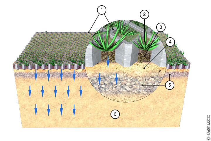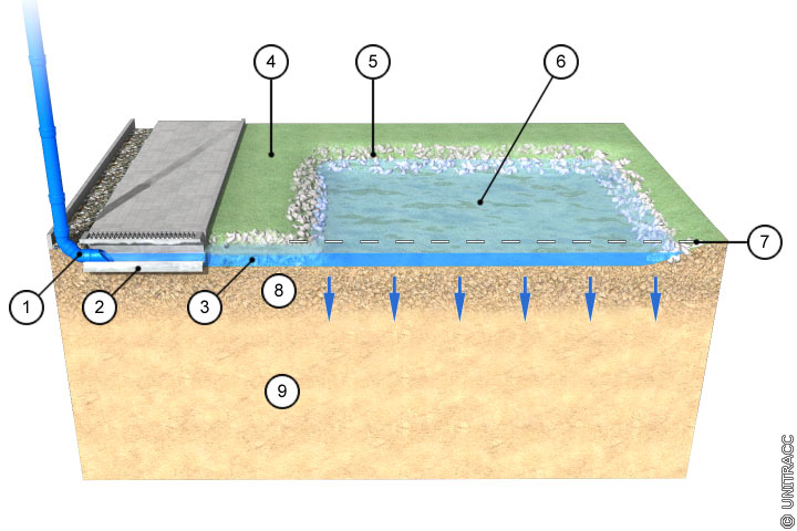 Funktionsbeschreibung: Flächenförmige Versickerung über eine durchlässige Oberfläche