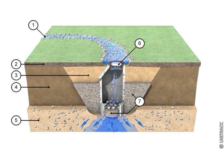 Funktionsbeschreibung: Punkförmige Versickerung direkt in tiefergelegene, sickerfähige Schicht