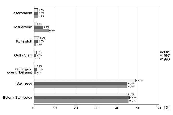 Werkstoffverteilung in den Kanalisationen der Bundesrepublik Deutschland (Stand 1990 und 2001) [ATV02] |