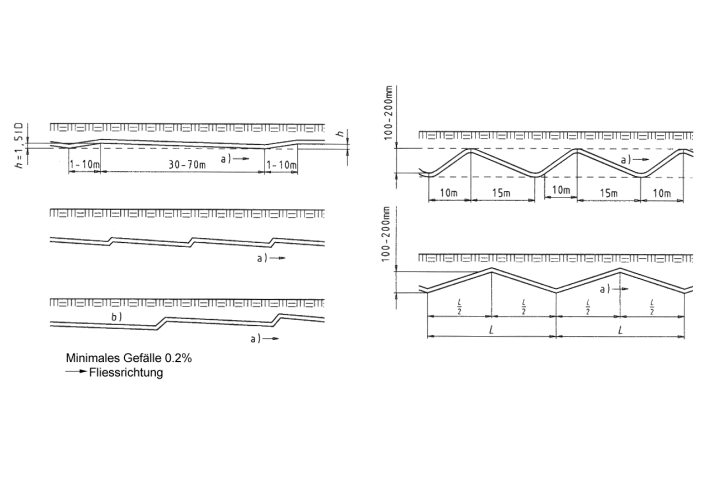Abweichungen vom Gefälle bei der Bauausführung dürfen keinen Rückfluss verursachen.
