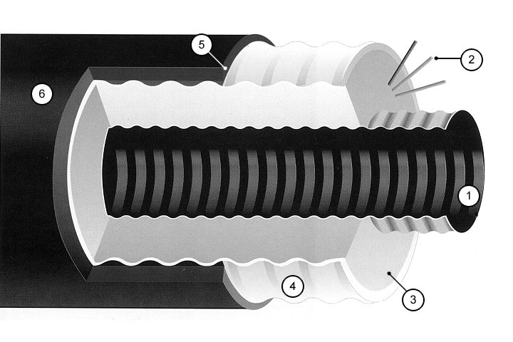 Aufbau eines flexiblen MMR mit gewelltem Metallmediumrohr am Beispiel des Lexwell-Fernheizkabels® [FI-Brugg]