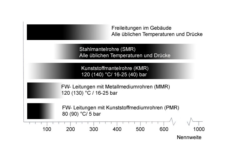 Anwendungsbereich gebräuchlicher Fernwärmeleitungen [AGFW00] |