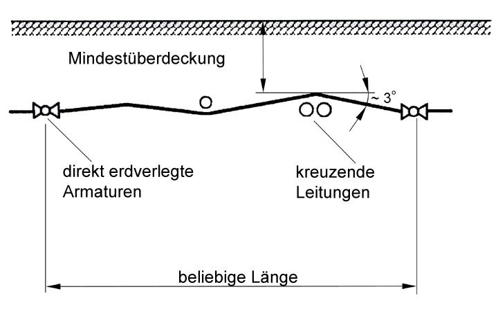 Bei der Vielzahl von Hoch- und Tiefpunkten im flachverlegten Rohrnetz ist eine vollständige Entleerung und Entlüftung der Rohrleitung nicht möglich.