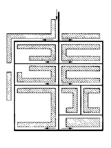 Geringe Baukosten | Zwangsdurch- strömung in einer Richtung. Lange Verweilzeiten in zu groß bemessenen Endleitungen möglich. |