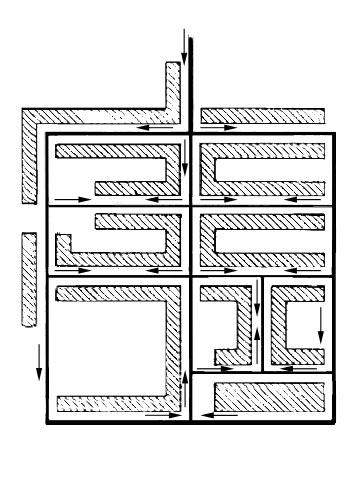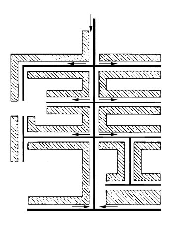 Verästelungsnetz: Rohrnetz aus sich verzweigenden Strängen, die miteinander keine weiteren Verbindungen haben [DIN4046].