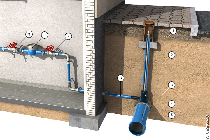 Versorgungsleitung: Wasserleitung, welche die Hauptleitung mit der Anschlussleitung verbindet. Versorgungsleitungen bilden das eigentliche Versorgungsnetz [Kittn].