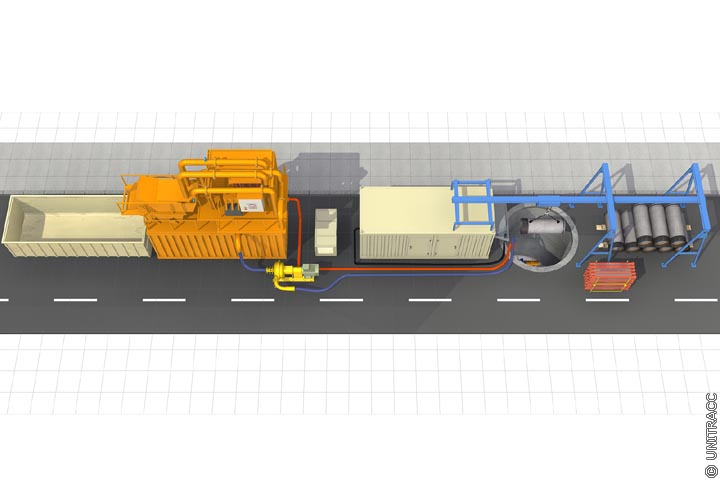 Separation des Bohrkleins durch Separationsanlage (Kompaktanlage MAB 300 mit einer Kapazität von 75 t Feststoffmenge/h) [FI-Schau] |