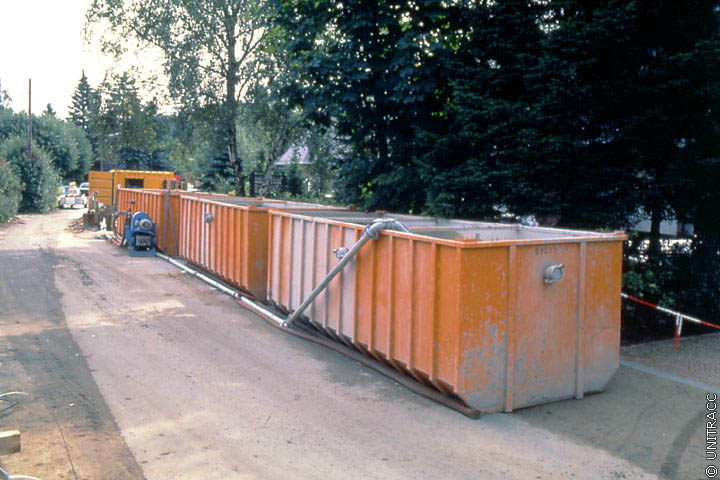 Separation des Bohrkleins durch hintereinander geschaltete Absetzbecken [Quelle: STEIN Ingenieure GmbH] |