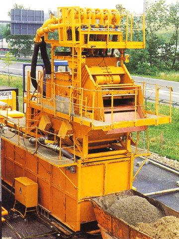 Das geförderte Feststoff-Flüssigkeitsgemisch muss in der Regel separiert werden, um zum einen das Spülmittel erneut dem Förderkreislauf zur Verfügung zu stellen, und zum anderen den gewonnenen Feststoff deponierfähig zu machen.