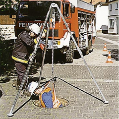 Abseil und Rettungshubgeräte [FI-Müller] - Tragbarer Dreiblock als Aufhängevorrichtungen für das Einstieg-Sicherungsgerät |