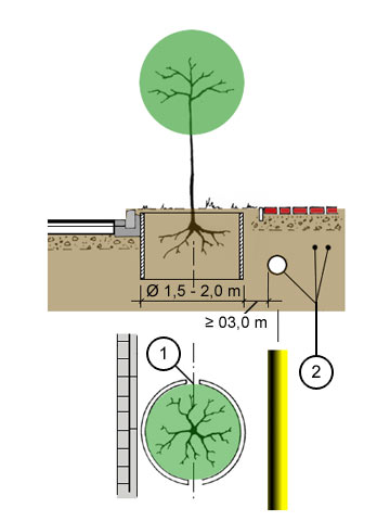 - Durch gezielte Maßnahmen ist ebenfalls sicherzustellen, daß das Wachstum und die Lebenserhaltung des jeweiligen Baumes und der Betrieb der Leitungen uneingeschränkt gewährleistet werden können.
