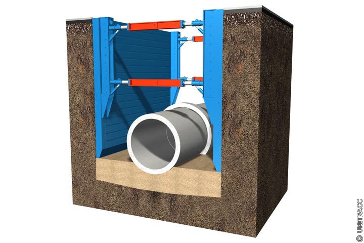Grabenquerschnitte für den Einbau von Kanälen in offener Bauweise in Anlehnung an [ATVA127:1988] [Quelle: STEIN Ingenieure GmbH] - Graben mit senkrechten Wänden |