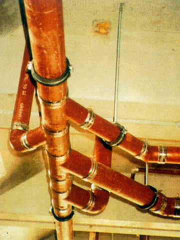 Die Sammelleitung unterscheidet sich von der Grundleitung dadurch, daß sie oberhalb oder zugänglich in einer Leitungsrinne innerhalb der tiefsten Kellersohle verlegt wird und dadurch problemlos inspiziert werden kann (Image 1.9.1-4) (Image 1.9.1-5) (Image 1.9.1-6) .