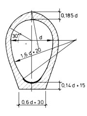 Bei den Dresdener Kanalbauten waren um 1910 [Frühl10] bei Eiquerschnitten bis d = 1000 mm folgende Abmessungen vorgeschrieben (Image 1.7.7.1-2) :