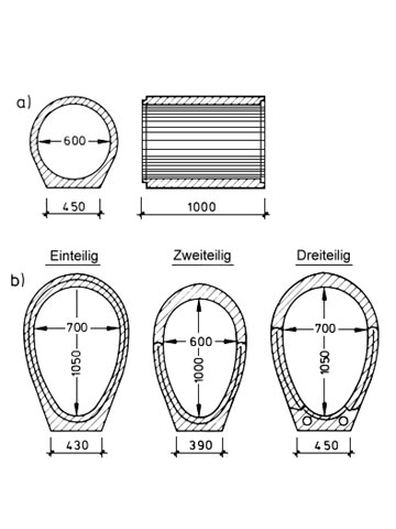 Rohre mit Eiquerschnitt erhielten im Scheitel eine größere Wanddicke als in den Kämpfern.