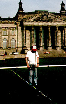 (Image 4.3.1.2.7-1) zeigt die Meßdurchführung von Hand. Der verwendete Frequenzbereich beim EMI-Verfahren reicht von etwa 10 Hz bis 2 MHz, die Spulenabstände variieren von wenigen Metern bis etwa 100 m (Image 4.3.1.2.7-2) .