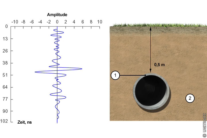 Reflektiertes Signal einer Messung mittels eines Georadars als Einzelpunktdarstellung in Anlehnung an [FI-Trote] [Quelle: visaplan GmbH] |