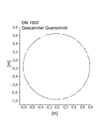 Der Kanal wird abschnittsweise gescannt, und die einzelnen Gerätestandorte werden durch eine polygonzugartige Verknüpfung in den Messungsablauf eingebunden. Auf diese Weise ist eine vollständige dreidimensionale Erfassung des gesamten Kanalverlaufs möglich. Horizontale und vertikale Lageabweichungen sowie Verformungen und Deformationen der Wandung und Querschnittsänderungen werden somit in einem Zug erfaßt.