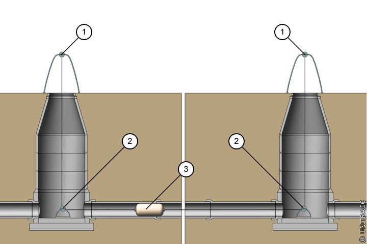 Die einfachste Art zur Ermittlung des Mindestquerschnittes und dessen Position in einer Kanalhaltung mit nichtbegehbarem Querschnitt stellt der Einsatz von Rohrkalibern dar, die in abgestuften Größen durch die jeweilige, vorab gereinigte Haltung gezogen werden. Es kommen Rohrstücke, Kreuzlehren oder spezielle, dem Durchmesser anpaßbare Kaliber (Animation 4.3.2.2.3-1) (Image 4.3.2.2.3-4) zum Einsatz.