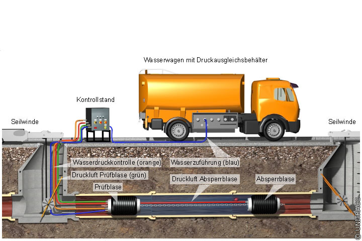 Prinzipdarstellung einer abschnittsweisen Dichtheitsprüfung [Quelle: STEIN Ingenieure GmbH] |