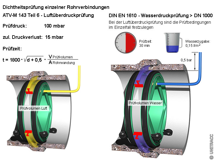Dichtheitsprüfung einzelner Rohrverbindungen - Prüfkriterien nach ATV-M 143 und DIN EN 1610 [Quelle: STEIN Ingenieure GmbH]