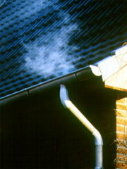 Durch Rauchtest festgestellter Fehlanschluß einer Regenfallleitung an einem Schmutzwasserkanal [FI-KMG] |