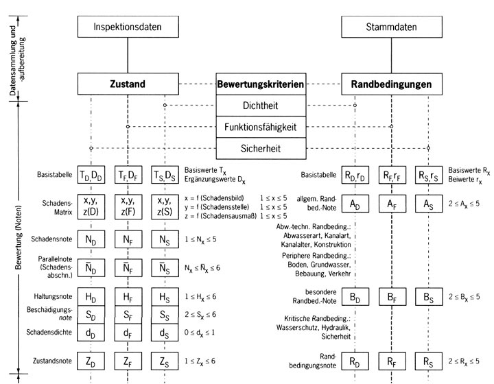 Aus den jeweiligen Zustandsnoten wird eine gewichtete, schutzzielorientierte Kanal- bzw. Bauwerkskennzahl abgeleitet, mit der es möglich ist, jeden einzelnen Kanal und jedes Bauwerk in bezug auf die genannten Schutzziele zu beurteilen.