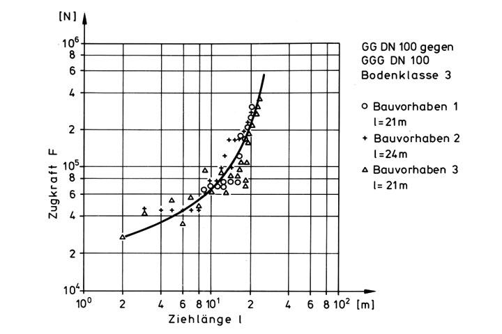 Erforderliche Zugkraft bei Anwendung des Rohrausziehverfahrens [Stein88a] |