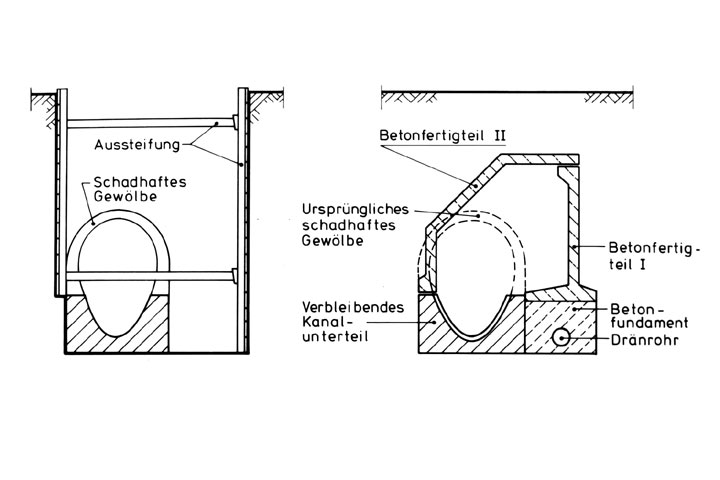 Teilerneuerung begehbarer Abwasserkanäle nach dem Gewölbeverfahren [Kuczy80] |