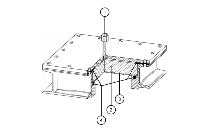- Die Prüfkörper werden in eine Versuchseinrichtung eingelegt und mit Wasser von Raumtemperatur gefüllt. Auf sorgfältige Entlüftung ist zu achten. Dann wird der in der (Table 5.3.2.1.2.1-1) vorgeschriebene Prüfdruck innerhalb von 30 Sekunden aufgebracht. Es wird festgestellt, ob die Prüfkörper in der vorgeschriebenen Prüfdauer diesen Anforderungen entsprechen. Als Versuchseinrichtung wird in [IfBt82] ein spezieller Prüfrahmen entsprechend (Image 5.3.2.1.2.1-1) vorgestellt. Maßgebend für die Beurteilung des Ergebnisses der Prüfung ist das Ausreißen des ersten Verankerungselementes aus dem Tragquerschnitt.