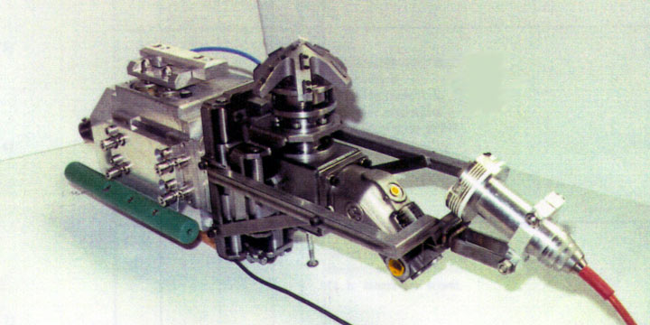 Für die Wiederherstellung der Einbindung von Anschlußkanälen gelten die entsprechenden Ausführungen des (Abschnitt 5.3.2.2.1) . Eine Spezialentwicklung für diesen Anwendungsfall stellt das aus drei Modulen bestehende System "Troll" dar. Durch ein Vermessungs- und Ortungsmodul (Image 5.3.2.3.1.2-3) , welches aus einer als Kameraträger fungierenden, selbstfahrenden Lafette mit eingebauten Weg- und Lagesensoren besteht, können die Daten über die axiale und radiale Position sowie Abmessungen des Einbindungsbereiches und über das Gefälle der Haltung gewonnen werden. Ein durch zwei höhenregulierbare Gleitkufen positionierbares Fräsmodul (Image 5.3.2.3.1.2-4) öffnet die eingemessene Stelle im Inliner mittels eines rotierenden Fräskopfes unter Kamerabeobachtung. Die Abdichtung des Einbindungsbereiches wird durch Einbau einer epoxidharzgetränkten Hutmanschette mit dem Einbindungsmodul realisiert (Image 5.3.2.3.1.2-5) .