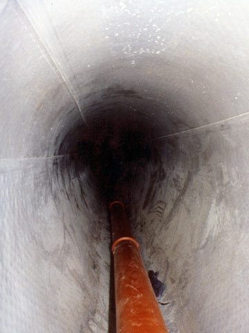 Mit Noppenschlauchverfahren sanierter Abwasserkanal mit Eiquerschnitt [FI-Troli]
