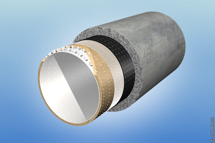 Bei besonderen Anforderungen wird das Doppelwandsystem (Image 5.3.2.4.2-8) (Image 5.3.2.4.2-9) eingesetzt, welches aus zwei Noppenschläuchen besteht. Nach [FI-Troli] können mit diesem System Kanäle bis DN 1600 saniert werden.