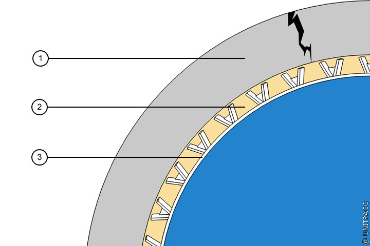 Bei Undichtigkeiten der zu sanierenden Kanalhaltung kann der Injektionsmörtel durch diese austreten und damit gleichzeitig auch evtl. vorhandene Hohlräume in der Leitungszone verfüllen. Risse und Rohrbruchstellen in der Rohrwand werden ebenfalls verfüllt und verfestigt.