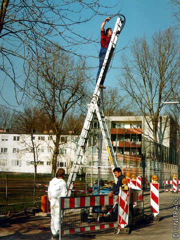 Arbeitsschritte beim Noppenschlauchverfahren - Aufbau der Steigleitung für die hydrostatische Druckhöhe von 0,5 bar [Quelle: STEIN Ingenieure GmbH] |